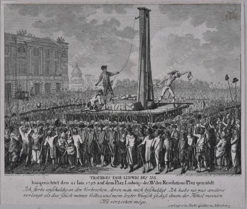 TRAURIGES ENDE LUDWIG DES XVI. / hingerichtet den 21. Ian. 1793. auf dem Plaz Ludwigs des XV der Revolutions Plaz genandt.