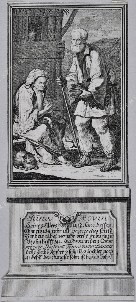 JÁNOS ROVIN / Seines Alters 172 und Sara dessen Ehweib 164 iahr alt graeci ritus seind verheirathet 147 iahr. Beede gebürtig u(nd) Wohnhafft zu Szadova in dem Caran-sebeser District Temesvarer Banats desse(n) Leibl. Kinder 2 Sohn u(nd) 2 töchter noch in Lebe(n) der Jüngste Sohn ist bey 116 Jahre(n).