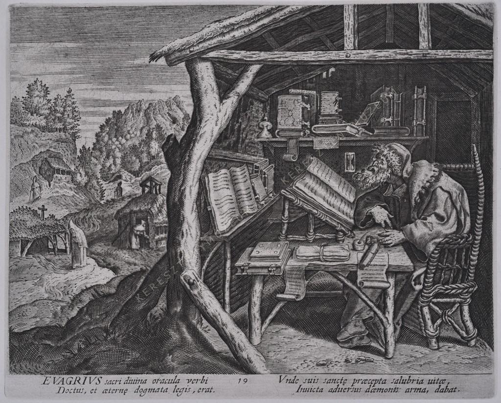 Hollstein ; Leopoldine van Hogendorp Prosperetti: ""Helenus and Dorotheus: Marten de Vos and the Desert Fathers,"" in: Walter Melion, James Clifton, Michel Weemans (szerk.): Imago Exegetica: Visual Images as Exegetical Instruments, 1400-1700. Leiden: Brill, 2014, 423-448. Domenico de Rossi: Indice delle stampe, intagliate in rame a bulino, e in acqua forte esistenti nella stamperia di Domenico de' Rossi erede di Gio. Giacomo appresso Santa Maria della Pace in Roma. […] 1714, 80. o: Libro de' Santi Eremiti, intitolato Solitudo, sive Vitae Patrum Eremicolarum in 30 fogli mezzi reali intagliato a bulino. Giovanni Giacomo de' Rossiról és a Rossi család kiadói vállalkozásáról: Massimo Ceresa: ""De Rossi, Giovanni Giacomo"", in Dizionario Biografico degli Italiani, 39 (1991).
