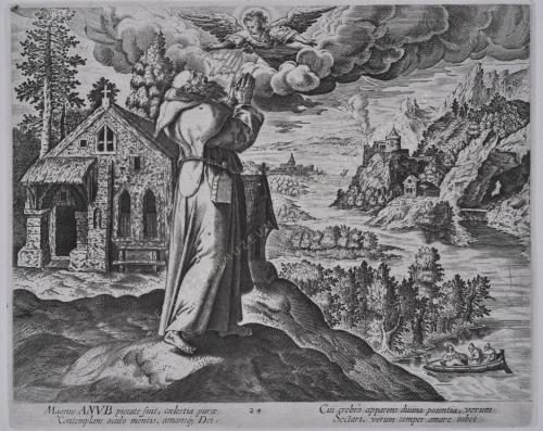 Magnus ANVB pietate fuit, coelestia purae Contemplans oculo mentis, amansque Dei. Cui crebro apparens diuina potentia, verum Sectari, verum semper amare iubet.