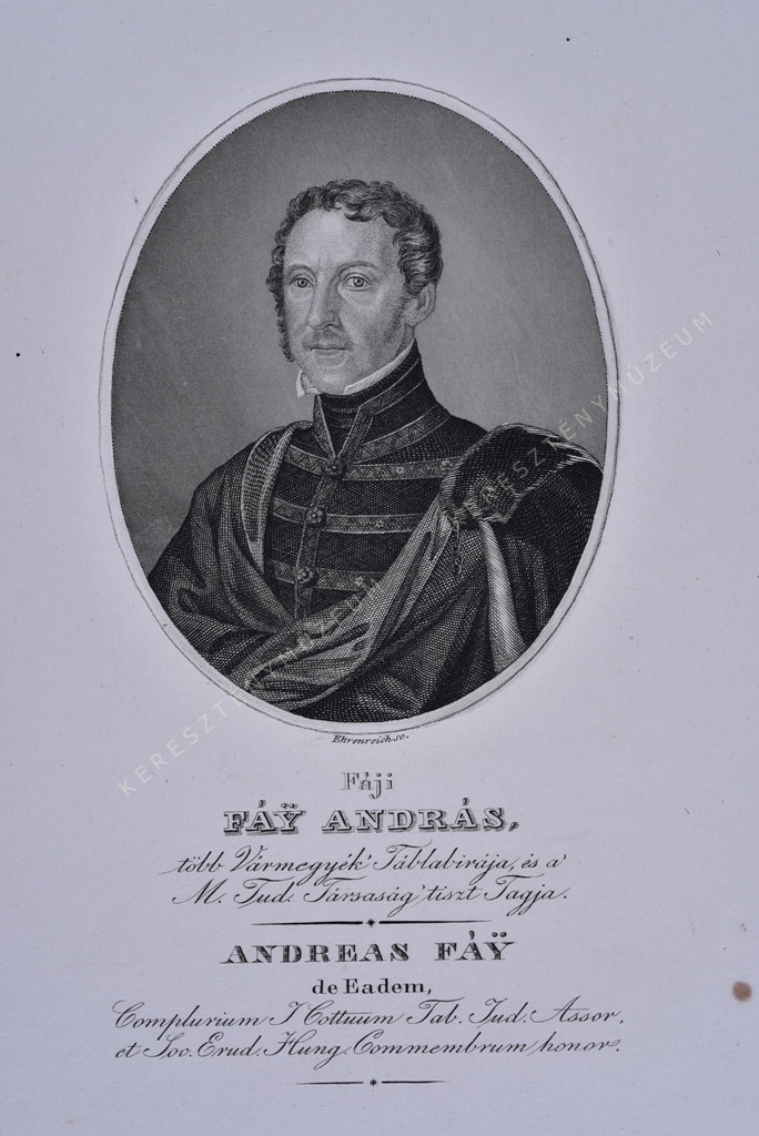 Több Vármegyék' Táblabirája, és a' M. Tud. Társaság' tiszt. Tagja. / ANDREAS FÁӰ de Eadem, Complurium I. Cottuum Tab. Iud. Assor et Soc. Erud. Hung. Commembrum honor.