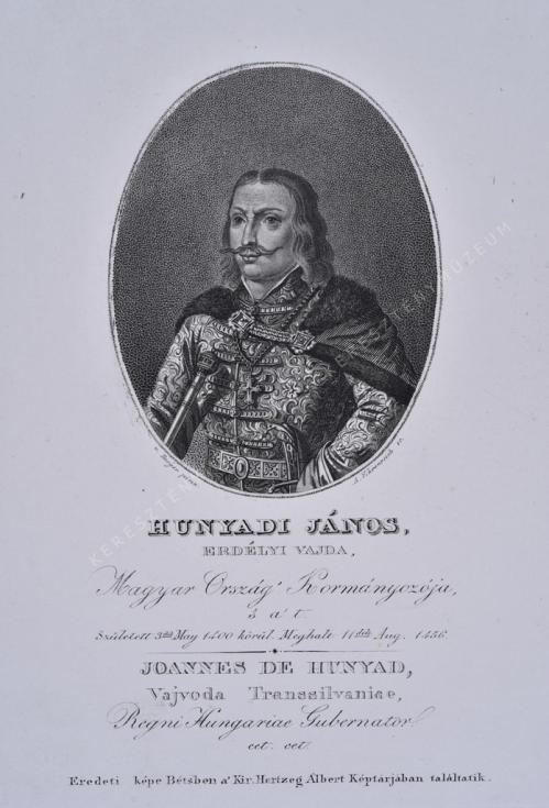 ERDÉLYI VAJDA, Magyar Ország' Kormányozója, 's a' t. Született 3dik May 1400 körül Meghalt 11dik Aug. 1456. / JOANNES De HUNYAD, Vajvoda Transsilvaniae, Regni Hungariae Gubernator cet.cet.