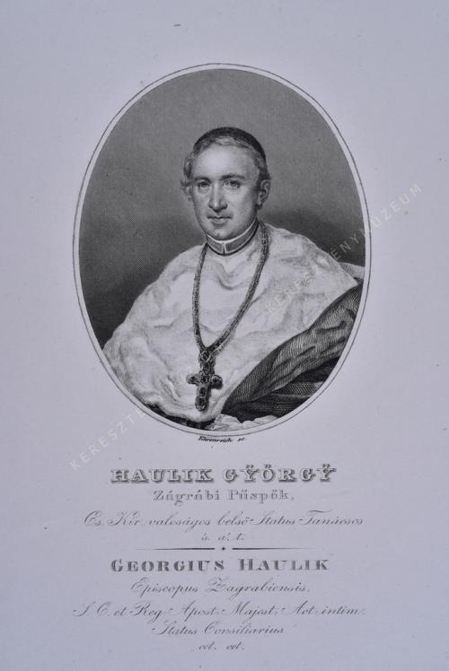 Zágrábi Püspök, Cs. Kir. Valoságos belsö Status Tanácsos 's a' t. / GEORGIUS HAULIK Episcopus Zagrabiensis, S. C. et Reg. Apost: Majest: Act: intim: Status Consiliarius. cet.cet.