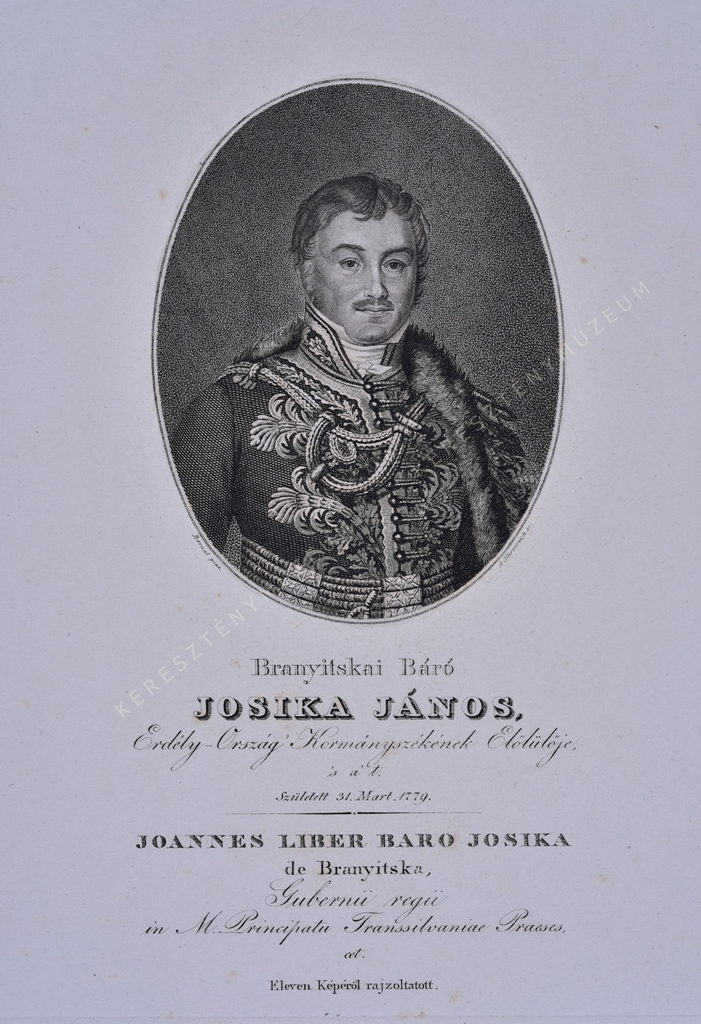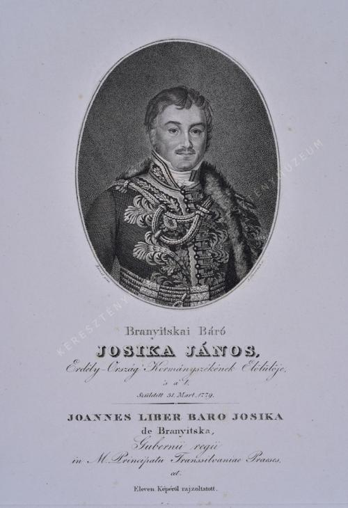 Erdély-Ország Kormányszékének Előlülője, 's a' t. Született 31. Mart. 1779. / JOANNEs LIBER BARO JOSIKA de Branyitska, Gubernii regii in M. Principatu Transsilvaniae Praeses, cet.