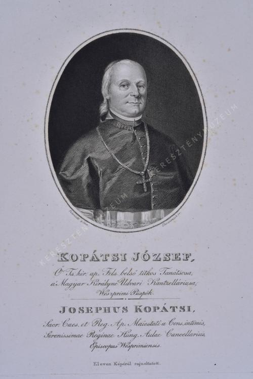 Ő Ts. Kir. Ap. Fels. Belső titkos Tanátsosa, a' Magyar Királyné Udvari Kantzelláriusa, Weszprimi Püspök. / JOSEPHUS KOPÁTSI, Sacr. Caes. et Reg. Ap. Maiestati Cons. Intimis, Serenissimae Reginae Hung. Aulae Cancellarius, Episcopus Wesprimiensis.