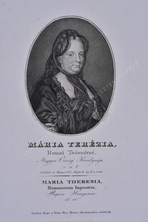 Romai Tsászárné, Magyar Ország' Királynéja, 's a' t. Született 13. Mayus 1717. Meghalt 29 Nov. 1780 / MARIA THERESIA, Romanorum Imperatrix, Regina Hungariae, cet.cet.