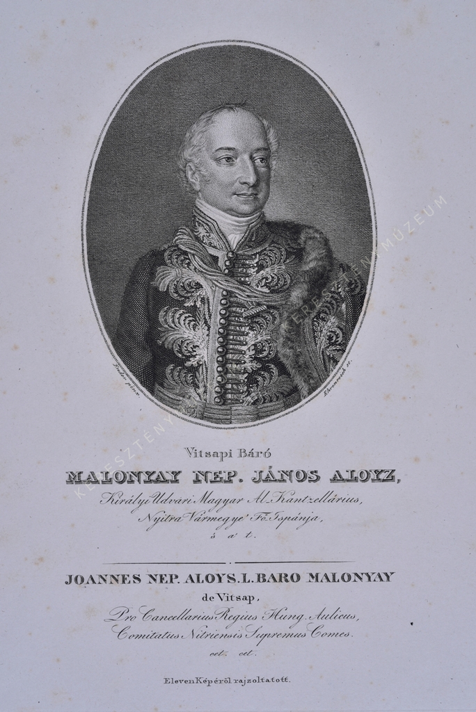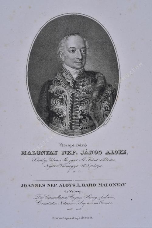 Királyi Udvari Magyar Al_Kantzellárius, Nyitra Vármegye Fő-Ispánja, 's a' t. / JOANNES NEP. ALOYS. L. BARO MALONYAY DE Vitsap, Pro Cancellarius Regius Hung. Aulicus, Comitatus Nitriensis Supremus Comes, cet.cet.