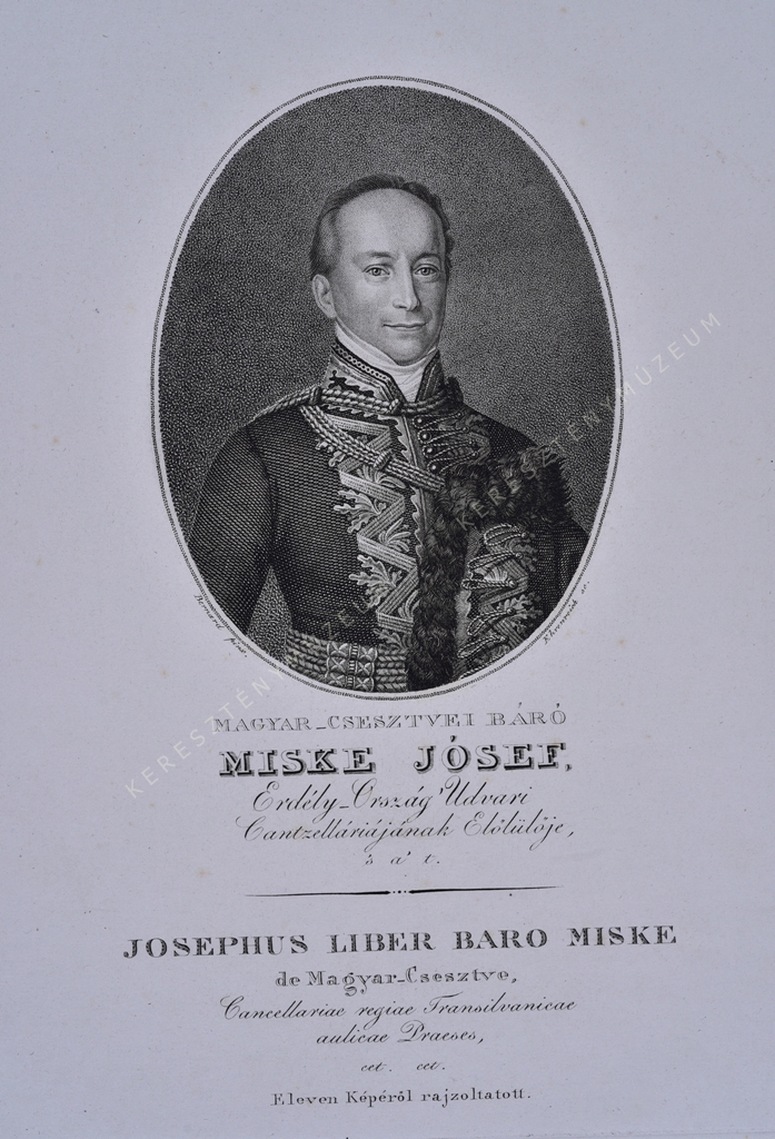 Az Icones Principium, Procerum ac praeter hos illustrium Virorum Matronariumque veteris et praesentis aevi, quibus Hungaria et Transsylvania clarent című portrésorozat (1823-1835) része. Miske József (Nagyszeben 1774 - 1855 Baden bei Wien)