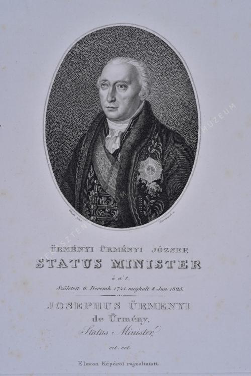 STATUS MINISTER 's a' t. Született 6. Decemb. 1741. meghalt 8. Jun. 1825. / JOSEPHUS ÜRMENYI de Ürmény Status Minister, cet.cet.