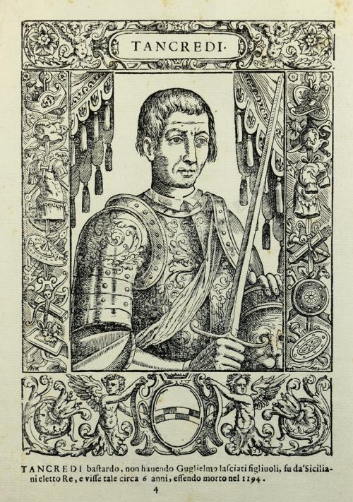 TANCREDI. Tancredi bastardo, non hauendo Guglielmo lasciati figliuoli, fu da' Siciliani eletto Re, e visse tale circa 6 anni, essendo morto nel 1194.