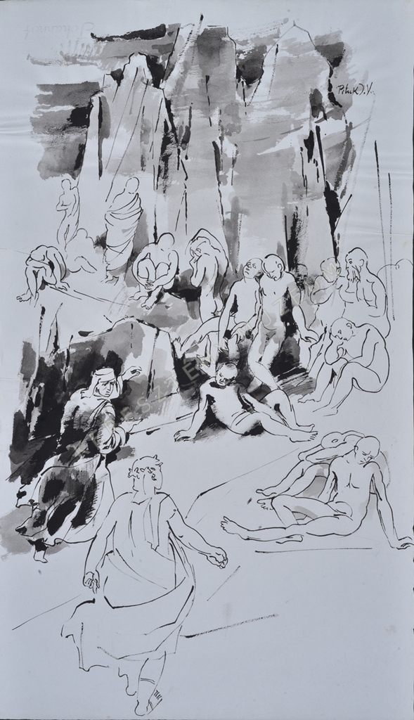 papír, lavírozott tus