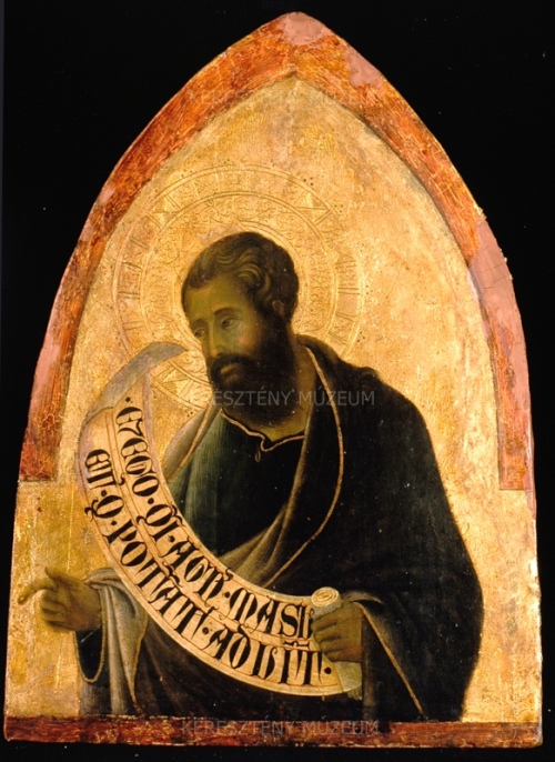 A kiemelkedő kvalitású kép egykor poliptychon jobboldali oromzati darabja volt. A balra forduló és lefelé – egykor bizonyára Máriára és gyermekére – mutató próféta személyére a kezében tartott írástekercsen olvasható, Krisztus áldozatára utaló jövendölés utal: „és én, mint szegény bárány, ki áldozatra vitetik” (Jeremiás 11, 19). Az arctípus és a zöldes aláfestéssel készült, erős fény-árnyék kontraszttal kiemelt formák még a bizánci tradíciót őrzik, míg a gótika formanyelvének ismeretére vall a finom tónusátmenetekkel megfestett drapéria és a gazdag redőkezelés, melyet a ruhaszegélyen végigfutó vékony aranysáv lendületes vonala hangsúlyoz. Jeremiás fejét az Ószövetségi prófétákat megkülönböztető ötcsúcsú, erősen megkopott fejfedő fedi. A kép az itáliai trecento egyik legnagyobb mestere, a sienai Duccio közvetlen környezetében készült.