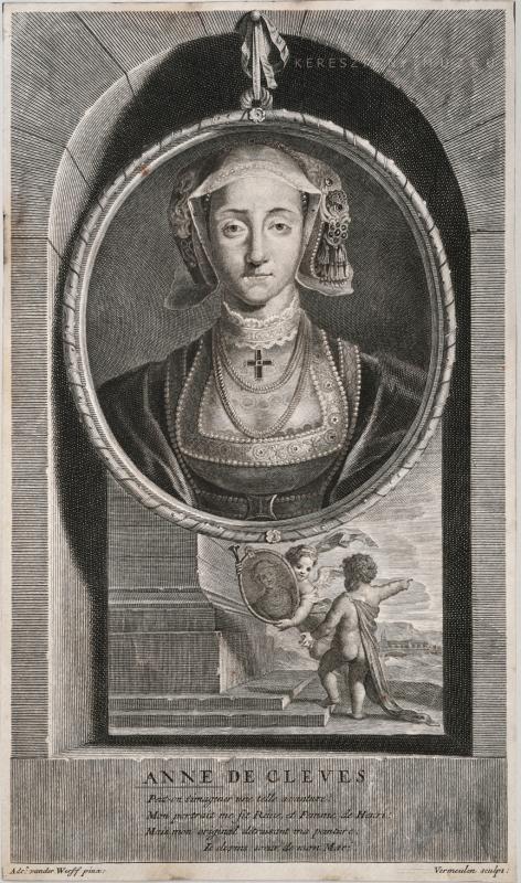 ANNE DE CLEVES / Peut-on s'imaginer une telle avanture? / Mon portrait me fit Reine, et femm de Henri: / Mais mon original détruisant ma peinture: / Ie devins soeur de mon Mari.