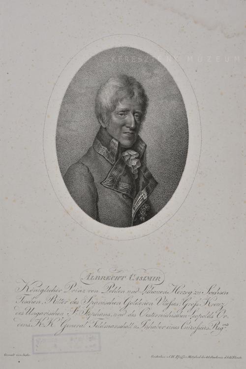 ALBRECHT CASIMIR / Königlicher Prinz von Pohlen und Lithauen, Herzog zu Sachsen / Teschen, Ritter des Spanischen Goldenen Vließes, Groß Kreuz / des Ungarischen S.t Stephans, und des Oesterreichischen Leopolds Or- / dens. K. K. General Feldmarschall u. Inhaber eines Cuirassier Reg.ents.