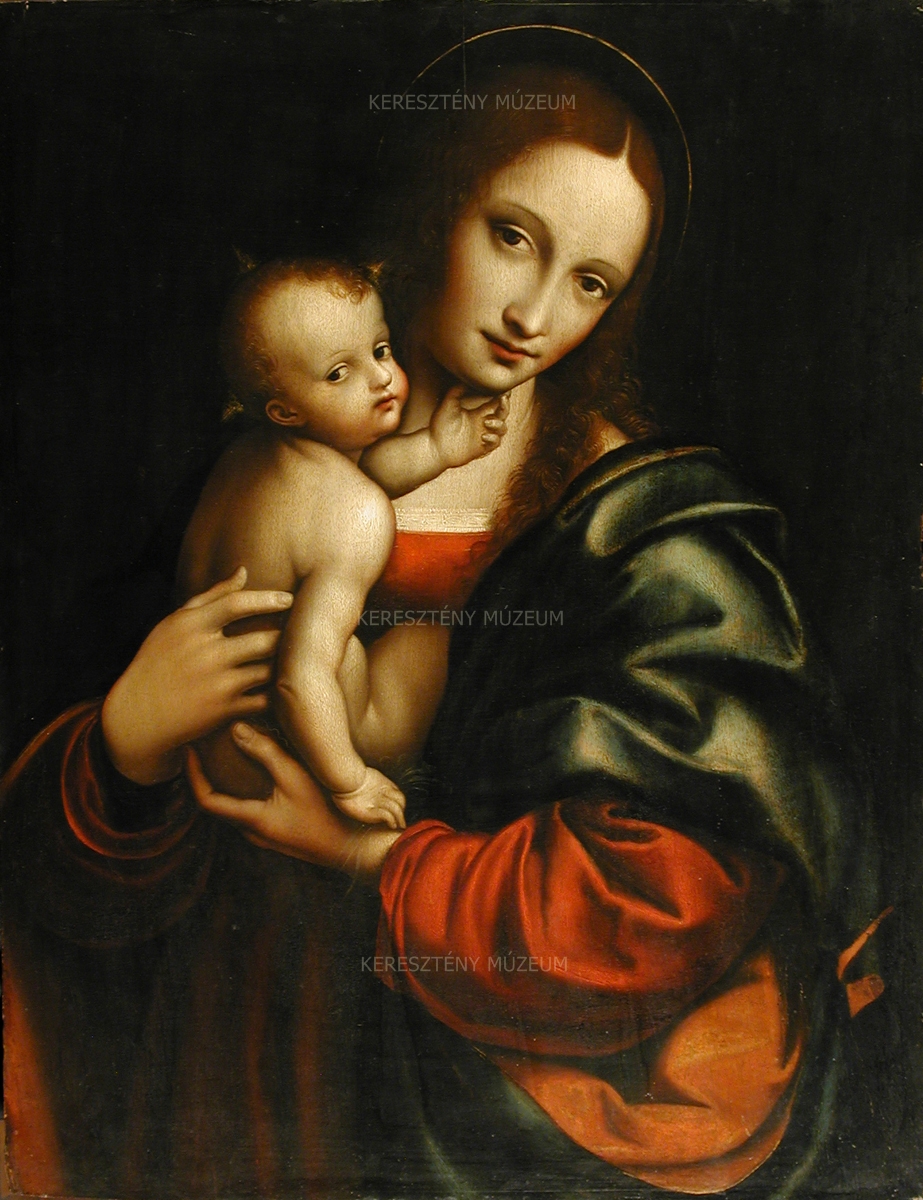 Leonardo da Vinci maga emlékezik meg egy „Gian Pietro” nevű tanítványáról, aki a 16. század első felében, Milánóban működő mesterrel, Giovan Pietro Rizzolival, hagyományos nevén Giampietrinóval azonosítható. Giampietrino nem volt újító, kísérletező kedvű alkotó, festői nyelvezetének összetevőit elsősorban mesterétől és annak követőitől (Marco d’Oggiono, Cesare da Sesto) kölcsönözte. E minden díszítőelemet nélkülöző, meleg tónusú kép hatása a sötét és az erős fénnyel kiemelt felületek ellentétére épül, a lágy formák szinte kiemelkednek a sötét háttérből. A gyermek keresett póza, a gyengéd érintés, s a néző tekintetének keresése mind olyan elemek, amelyek a korabeli megrendelők kedvére valók lehettek. A kompozíció egykori népszerűségére vall, hogy számos további változata is ismert. Giampietrinónak egyetlen évszámmal jelzett képe ismert (1521), műveinek kronológiája bizonytalan.