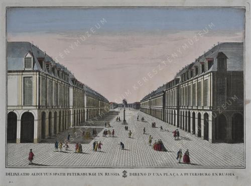 Il mondo nouvo p. 220; v.ö. Sixt von Kapff K282. Valószínűleg a csupán a XIX. századra elkészült Palota-tér egy terve. Ld. http://antiquariat-paulusch.de/stadtansichten/ansichten-guckkastenblaetter/guckkastenblaetter-russland/. G. B. Probstnál is: Sixt von Kapff, Angelika Steinmetz-Oppelland: "Weitverbreitete Ansichten: Guckkastenbilder aus dem Verlag von Georg Balthasar Probst (1731 - 1801) in Augsburg. Ein Forschungsbericht." In: John Roger Paas (szerk.): Augsburg, die Bilderfabrik Europas. Essays zur Augsburger Druckgraphik der Frühen Neuzeit. Augsburg: Wißner-Verlag, 2001, 199-226, No. 82/9 (211. o.)