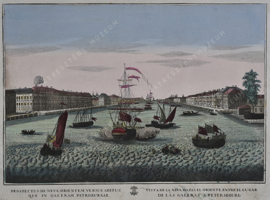 PROSPECTUS DE NEVA, ORIENTEM VERSUS ADITUS / QUE IN GALERAM PETROBURGAE // VISTA DE LA NEVA, HAZIA EL ORIENTE, ENTRE EL LUGAR / DE LAS GALERAS A PETERSBOURG