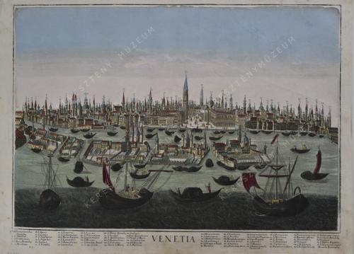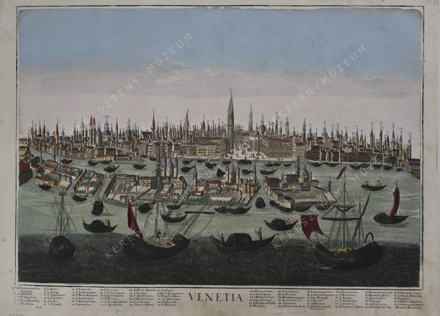A metszeten 1-től 70-ig megszámozott épületek listája a cím két oldalán: