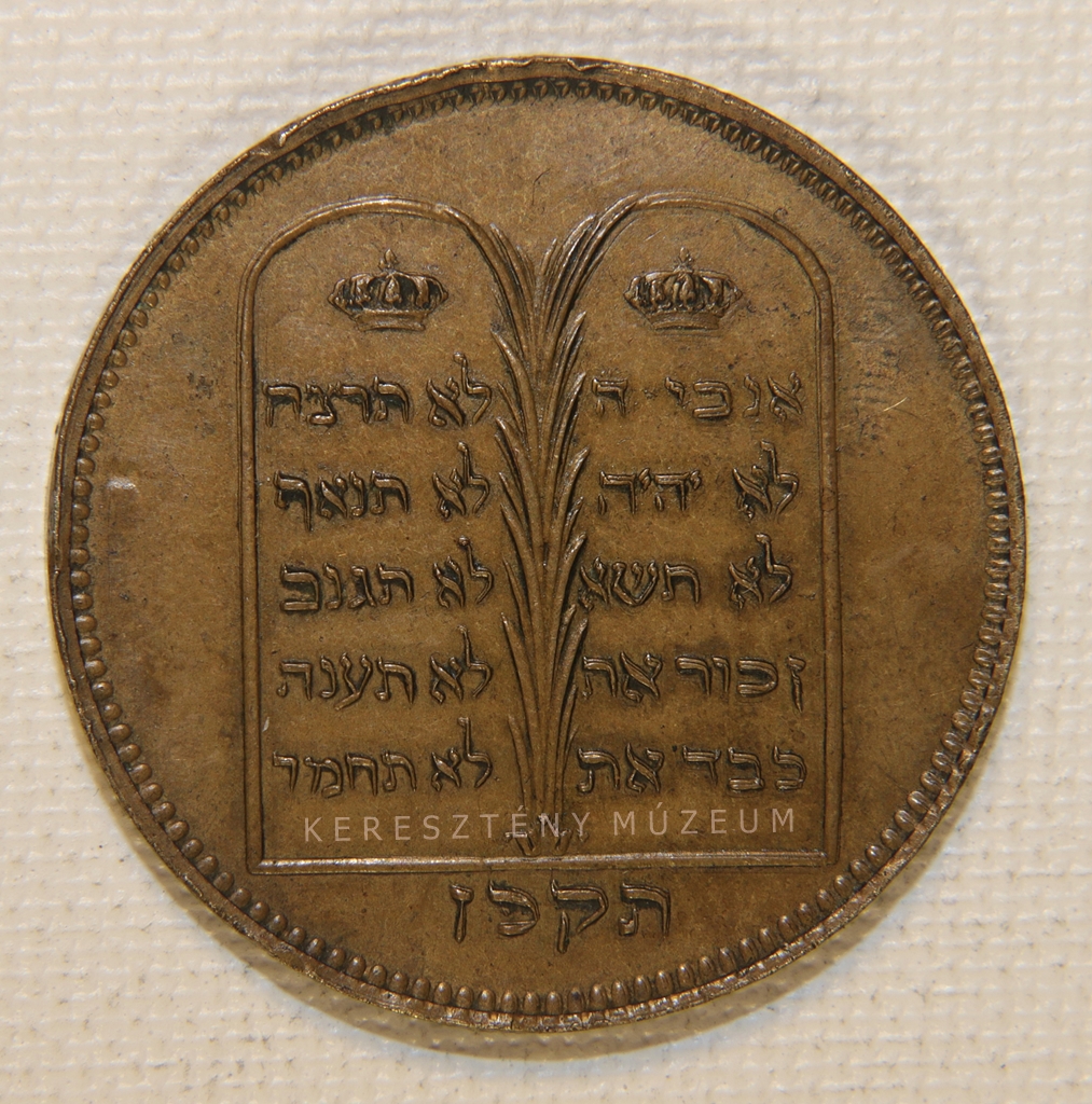 Tízparancsolat 2 kőtáblája héber felirattal, lent héber évszám: 5587