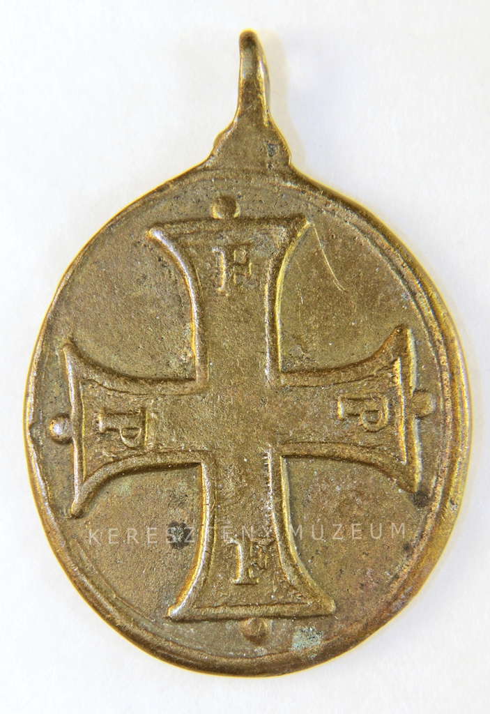 kereszt, a Szent Mihály Testvéri Szervezet jele, a kereszt száraiban: F-P-F-P betűk