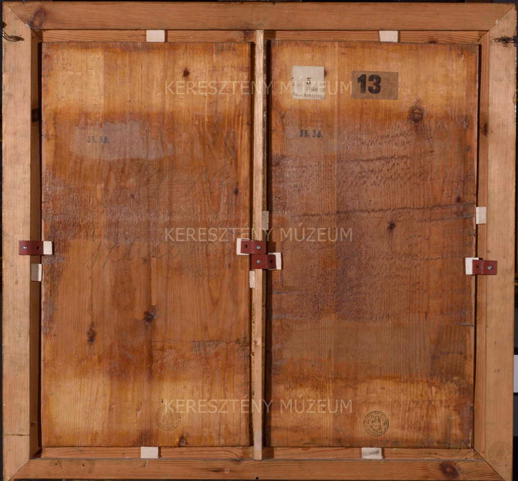 A Királyok imádását mutató kompozíció közös keretbe foglalt két táblán oszlik el. A Keresztény Múzeum 55.39 és 55.40 leltári számon nyilvántartott, a Királyok vonulását mutató tábláival feltehetően egyazon, talán éppen a Három Királyoknak szentelt szárnyasoltár részét képezhették. A festmények származási, a szárnyasoltár eredeti használati helye azonban ismeretlen.