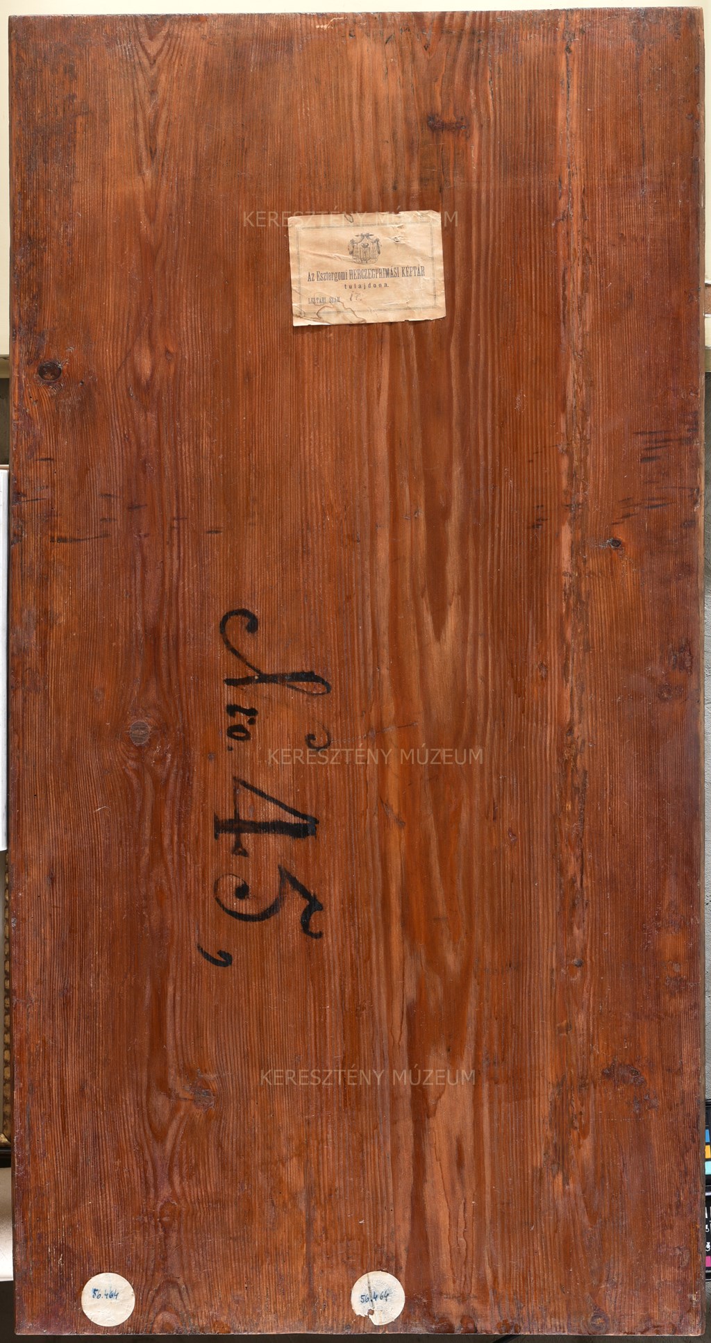 Hercegprímási Képtár 1879, 19. sz. – Magyar Sion 1885, 524, 673. – Maszlaghy 1891, 17-22 sz. – Gerevich Tibor: Az Újság 1916. július 14, 5 és július 20, 4. – Gerevich 1928, 214. – Genthon 1948, 124. – Boskovits-Mojzer-Mucsi 1964, 168-170. – Isolde Lübbecke: Zur Spätgotischen Tafelmalerei in Regensburg. In: Regensburg im Mittelalter. Beiträge zur Stadtgeschichte vom frühen Mittelalter bis zum Beginn der Neuzeit. Hg. Martin Angerer und Heinrich Wanderwitz. Regensburg 1995. 429-444. itt: 442, 97 jegyzet. (a proveniencia alapján elfogadja a regensburgi eredetet)