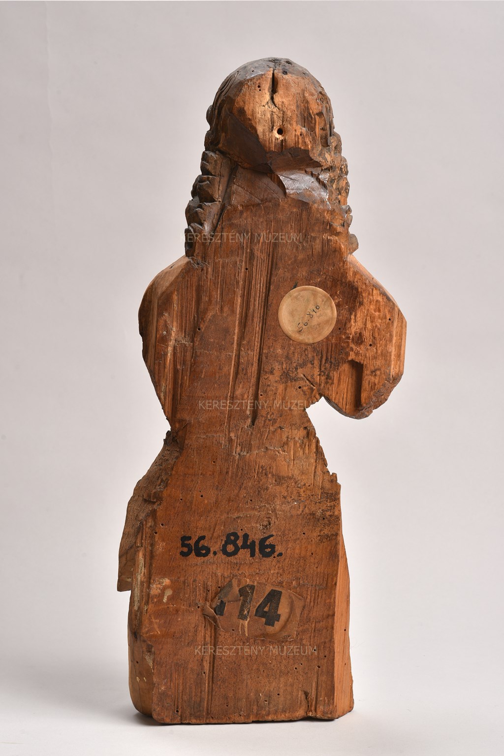 Ipolyi-gyűjtemény. “193. János evangélista féldombormű faszobra. Térdnél elvágva. Hazai. XV: sz.” (Lakatos-Balla 290)