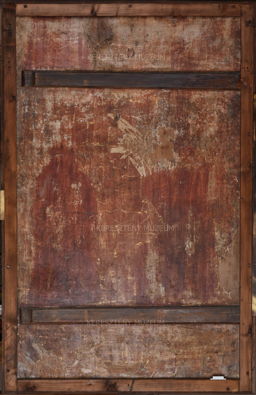 A Keresztény Múzeumban őrzött Keresztvitel- és a Kálvária-ábrázolás hátoldalain fennmaradt lenyomatok arra utalnak, hogy a mozgószárnyak egykori ünnepi oldalát domborműves kompozíciók díszítették, ezek bekarcolt körvonala és az őket körülvevő laparanyozás nyomai ma is jól láthatóak. A jobb oldali merevszárnyhoz tartozó Feltámadás-tábla hátoldalának jobb fölső sarkában talán Szent Katalin lefejezését mutató vázlatrajz figyelhető meg.