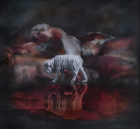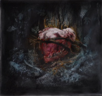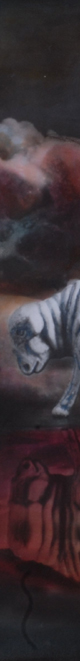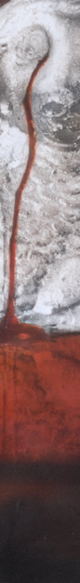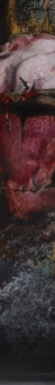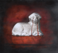 Az ezüstbárány szeméből vérkönnyek szivárognak. Hagyjuk most azt, hogy az piros festék, nem az! Ez jól látszik majd egy másik képkompozíción is, ahol vértócsában nézi magát egy másik BÁRÁNY, és vérpiros pocsolyákban tocsogó, fájdalmasan esztétikus húshalmok közt zarándokol.