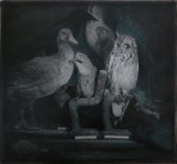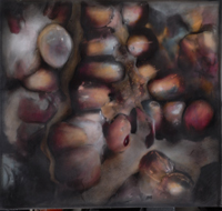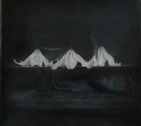 Időnként már-már „alpárian”, tehát ízig-vérig szürreális/lista módon láttatva a megálmodott szimbólumokat. Azokat a valamiket, amiket mindannyian ismerünk, láttunk már kollektív álmodozásaink során, de mégsem teljesen így. Tulajdonképpen ez lenne a szimbólum igazi jelentése. Jel, ami azonos akar lenni önmagával, mint jelzettel, de persze mégsem lehet az. Ezért több a szimbólum megjelenítése puszta ábrázolásnál. Ezért álomszerű - majdnem mindig - a művek megvalósulása, így jelen esetben is. Azt, hogy valóban egy meseszerű ÁLOMVILÁGba csöppentünk, abban járunk-kelünk a képeket nézve, mi sem támasztja jobban alá, mint sötét álomszínei, melyek kivétel nélkül jellemzik képeit.